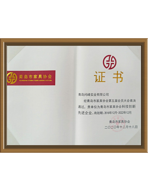 Certificate of advanced enterprise in scientific and technological innovation of Qingdao Furniture Association